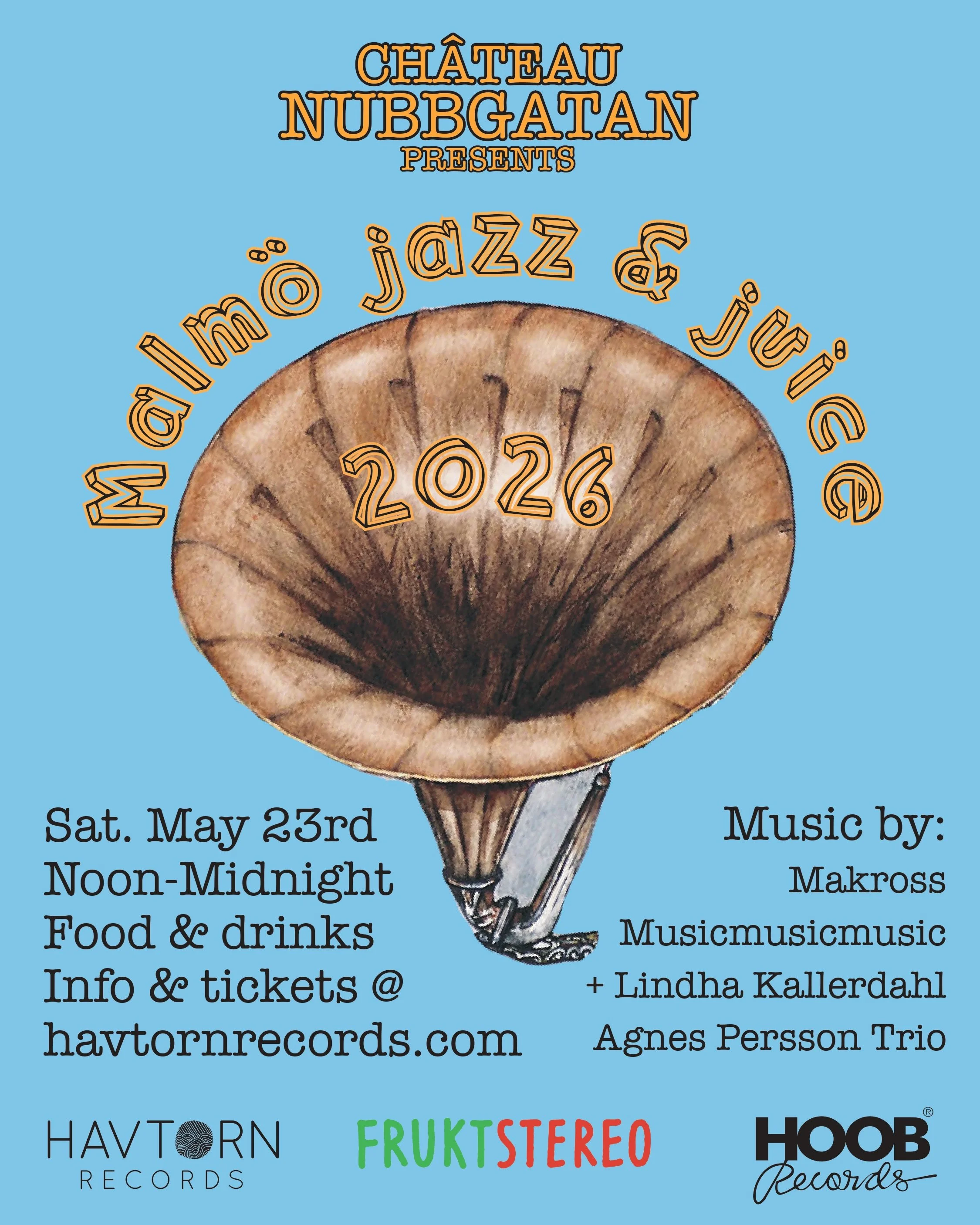 The three organizers HAVTORN RECORDS, HOOB RECORDS, and FRUKTSTEREO have joined forces to create something truly special: a one-day festival in Malmö focused on music, food, and drinks. The festival takes place in a unique setting at Fruktstereo (a.k.a. Château Nubbgatan) and in their cidery near Malmö Central Station.
